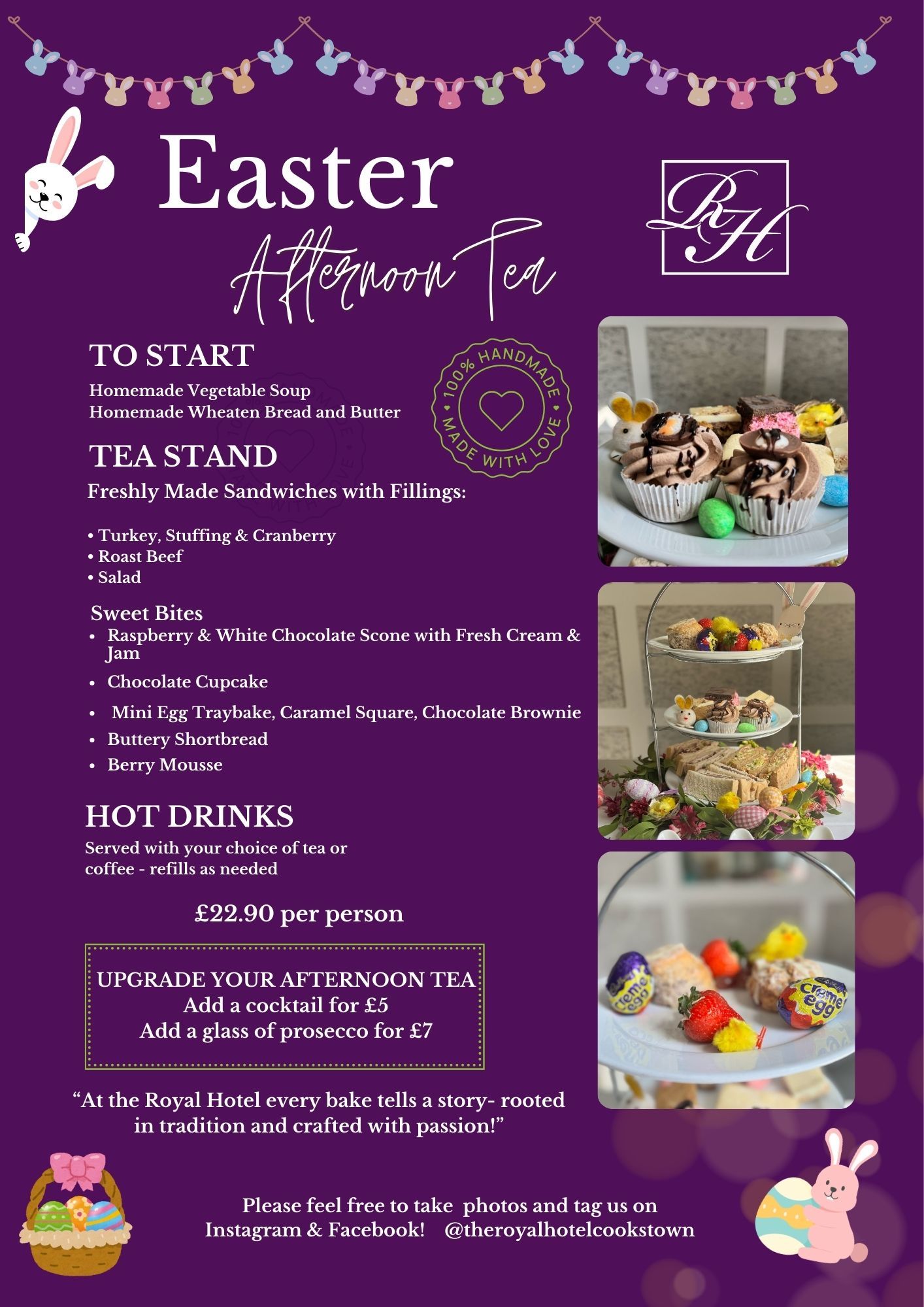 Experience the delights of The Royal Hotel and indulge in our all-new homemade treats for that perfect afternoon tea experience. Treat yourself or someone special today