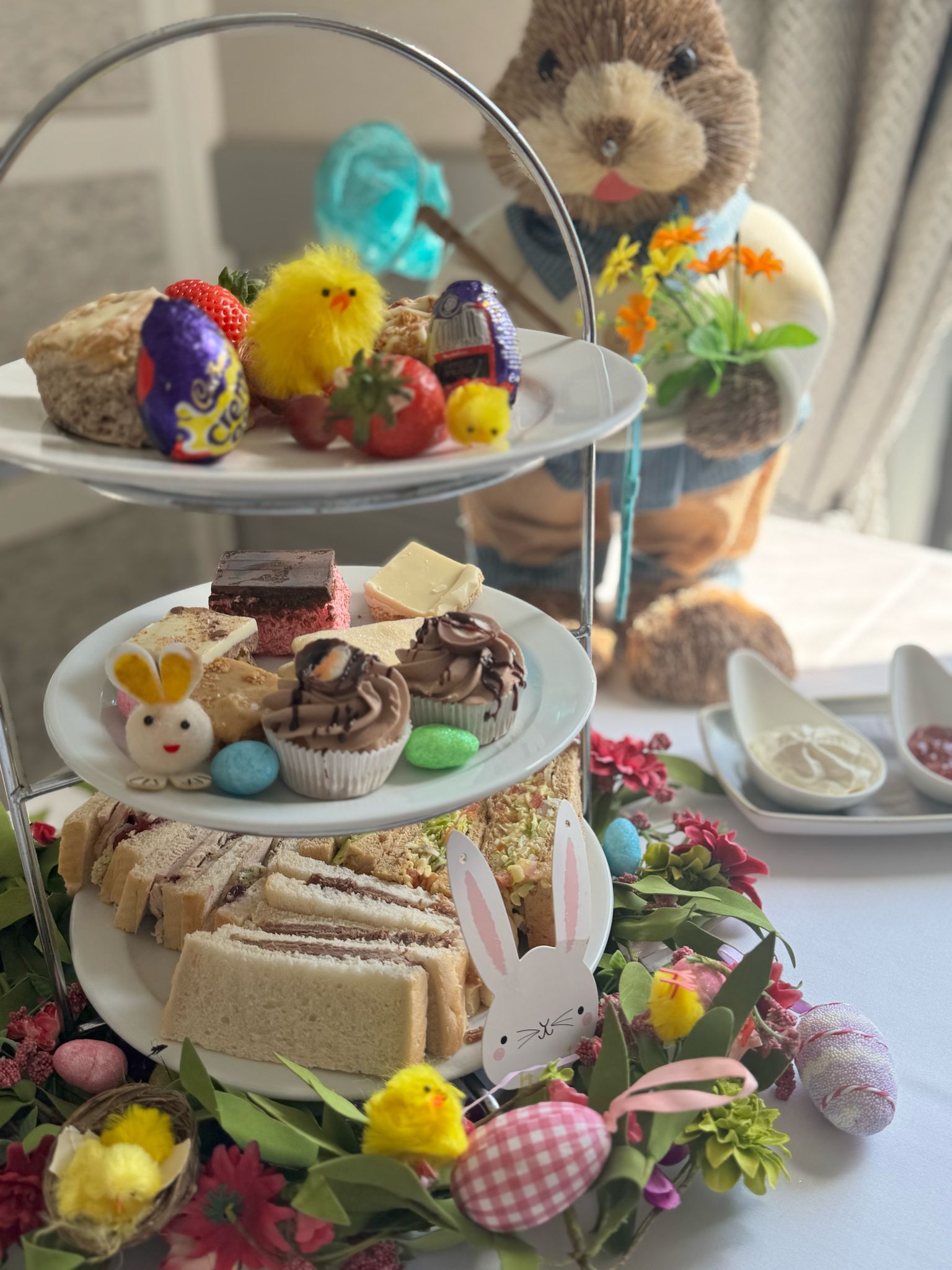 We also offer a Kid's Afternoon Tea option for children under 12 at £12 per person. This includes ham sandwiches, a homemade scone, a chocolate cupcake, shortbread, a traybake, a fruit skewer kebab, skinny fries with cocktail sausages, ice cream with marshmallows, and a fruit shoot.