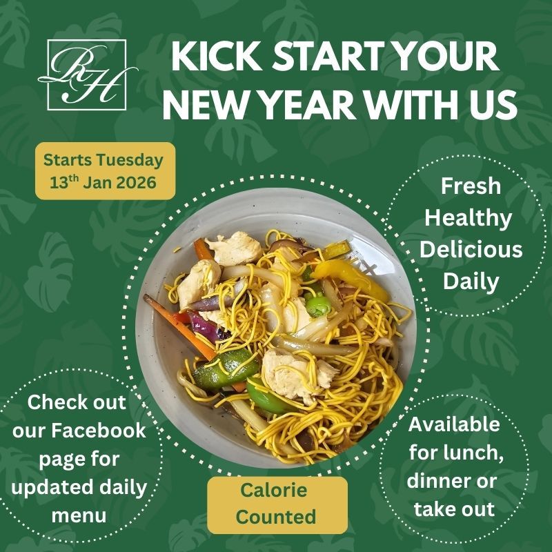Healthy Start Menu – January 2026 Kick-start the New Year with our fresh, healthy, calorie-counted dishes, available daily from Tuesday 13th January. Perfect for lunch, dinner, or takeaway. Check our Facebook page for the updated daily menu.