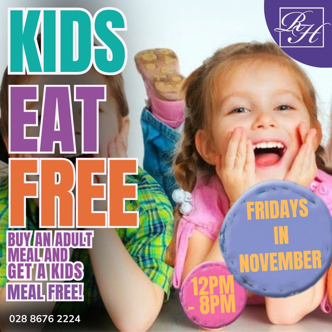 Join us every Friday in November at The Royal Hotel, Cookstown — buy an adult meal and get a kids’ meal free! Available from 12 pm to 8 pm.